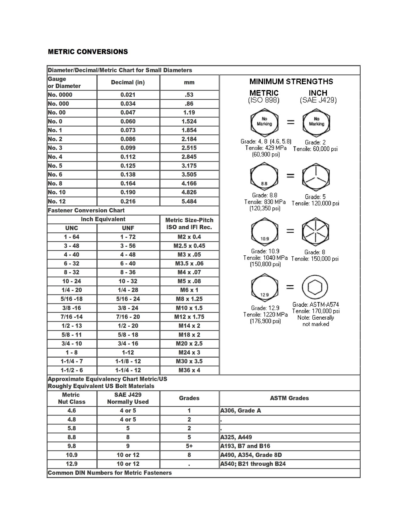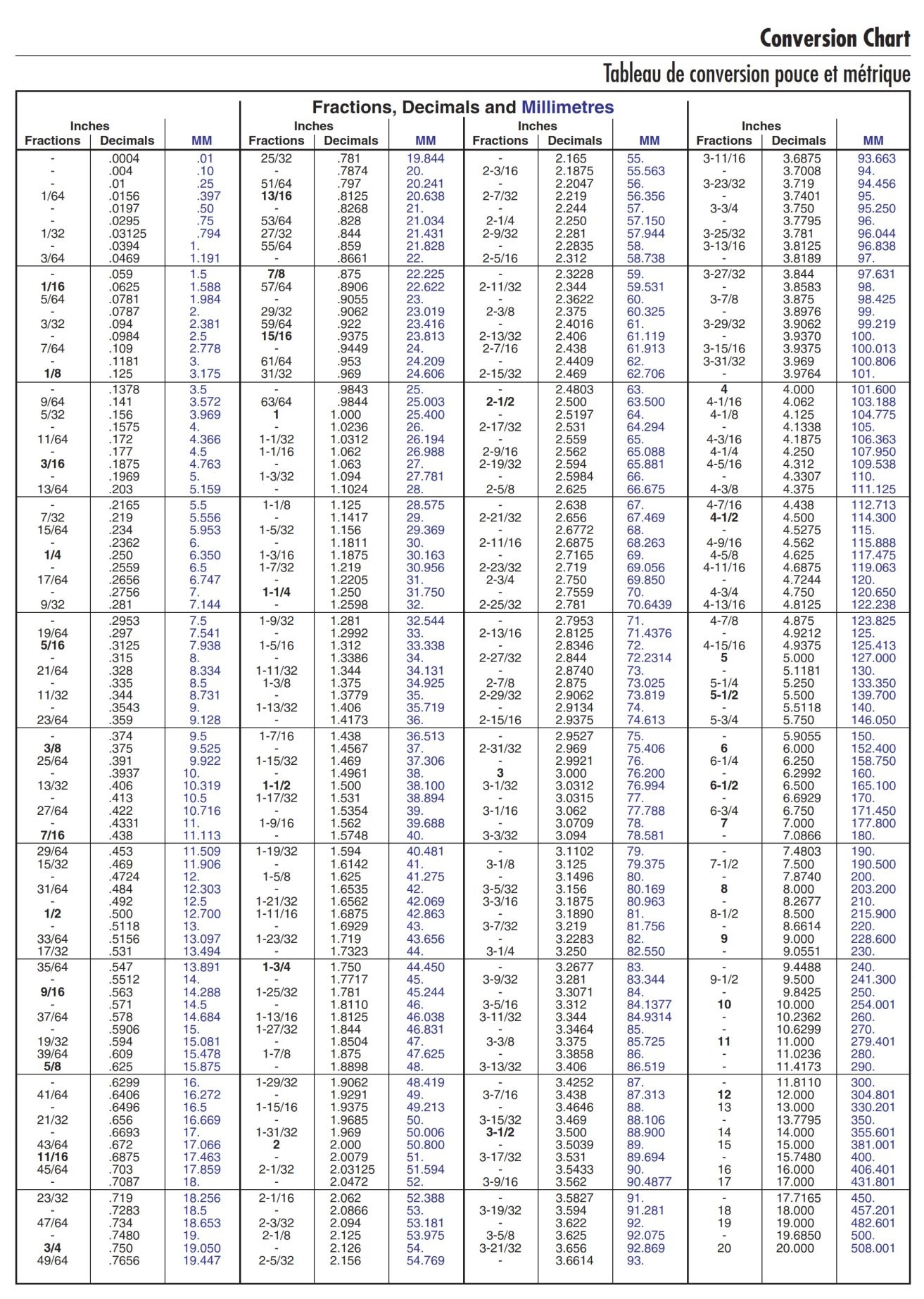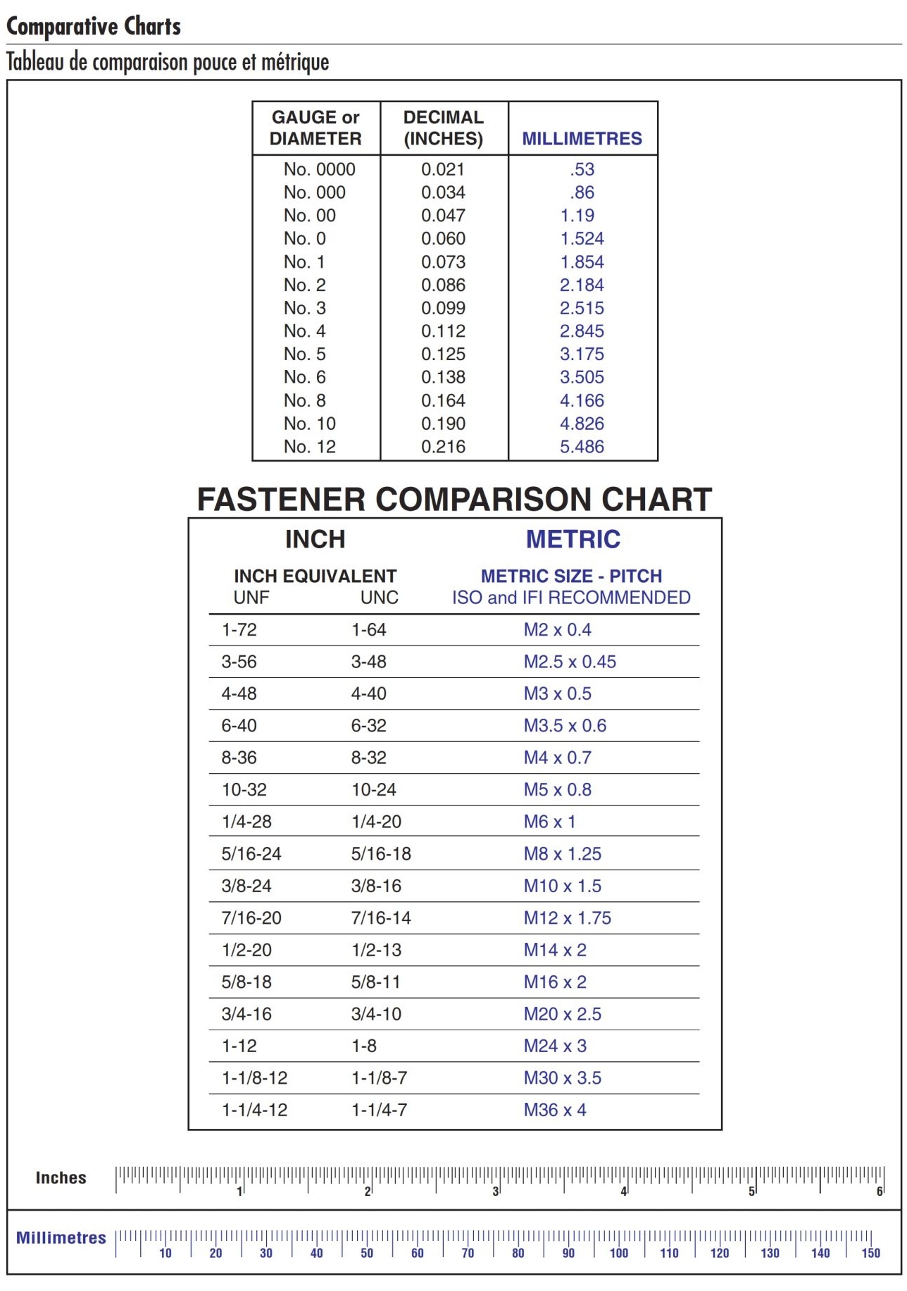 Metric-Inch comparative charts
