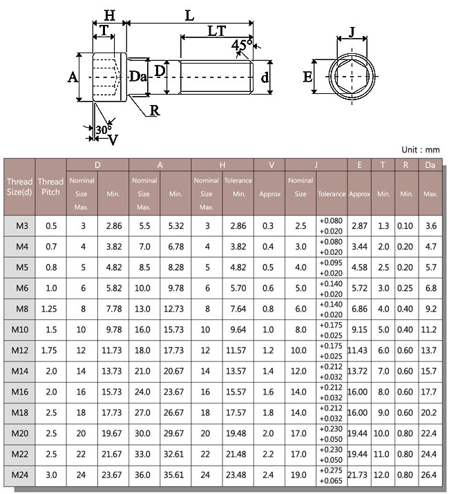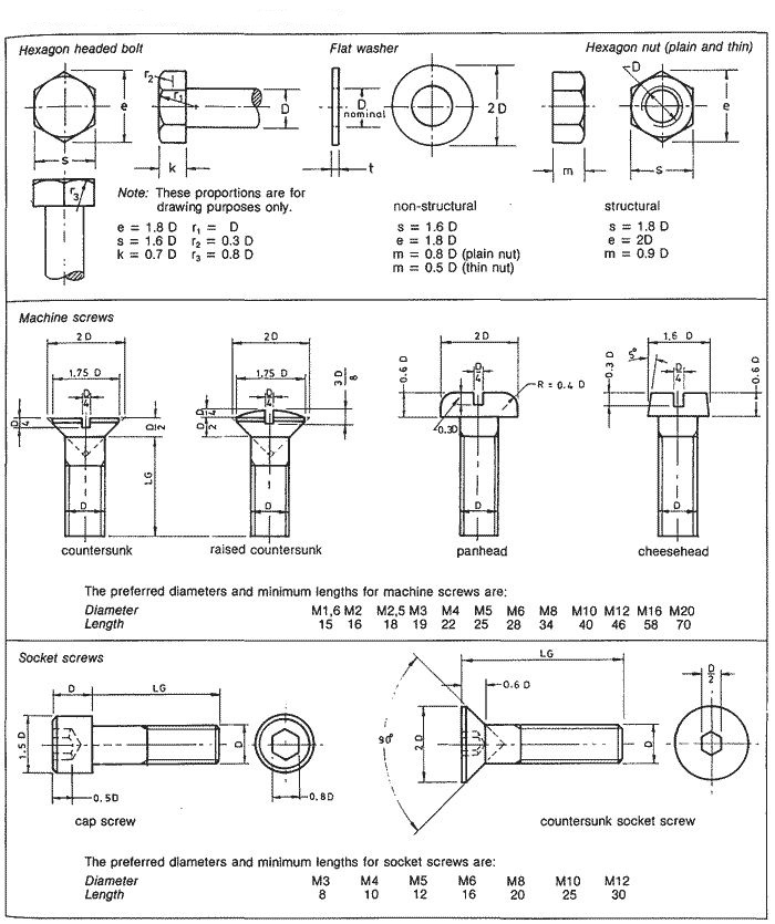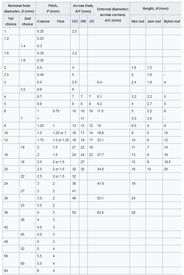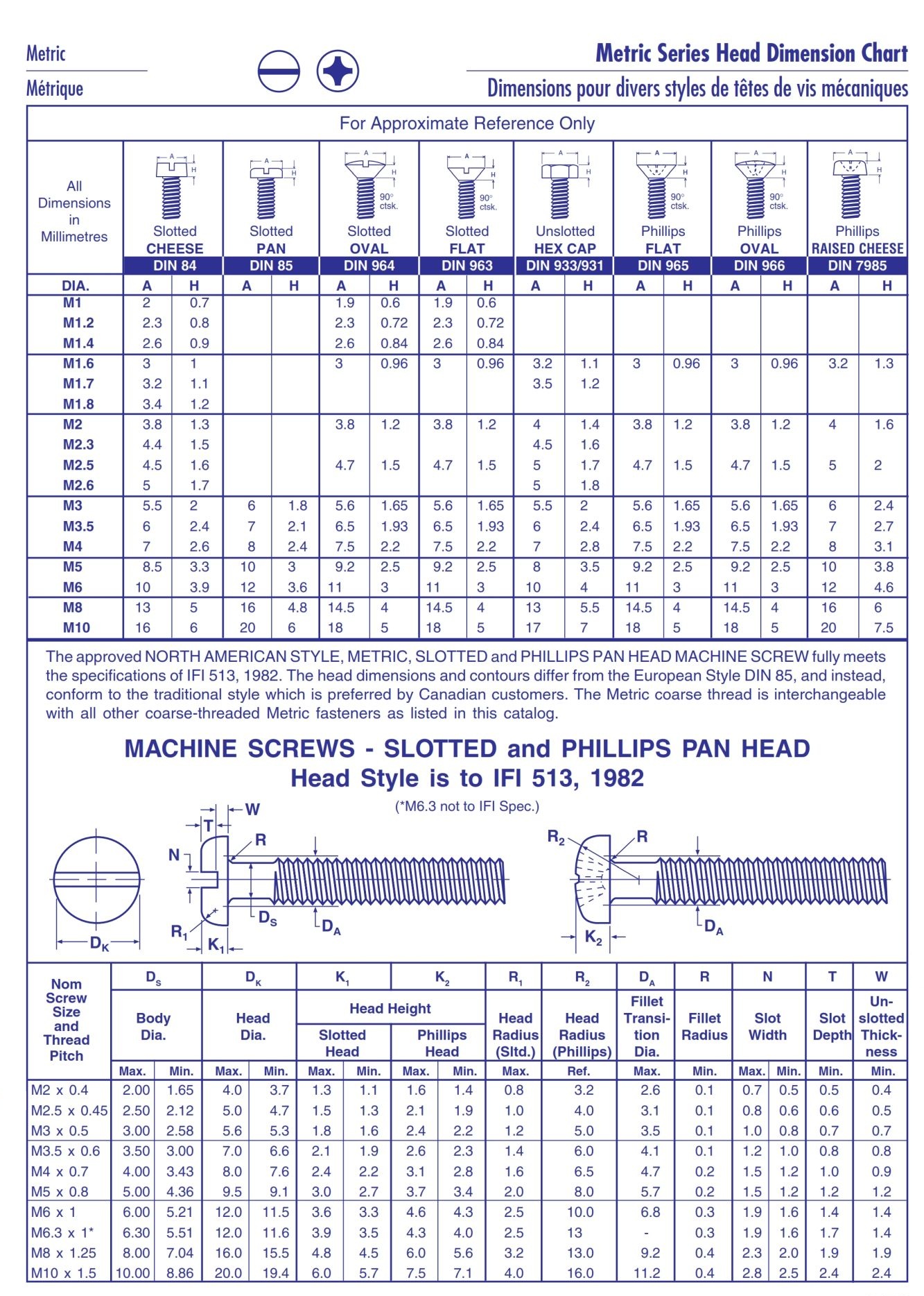 Metric series head dimension chart