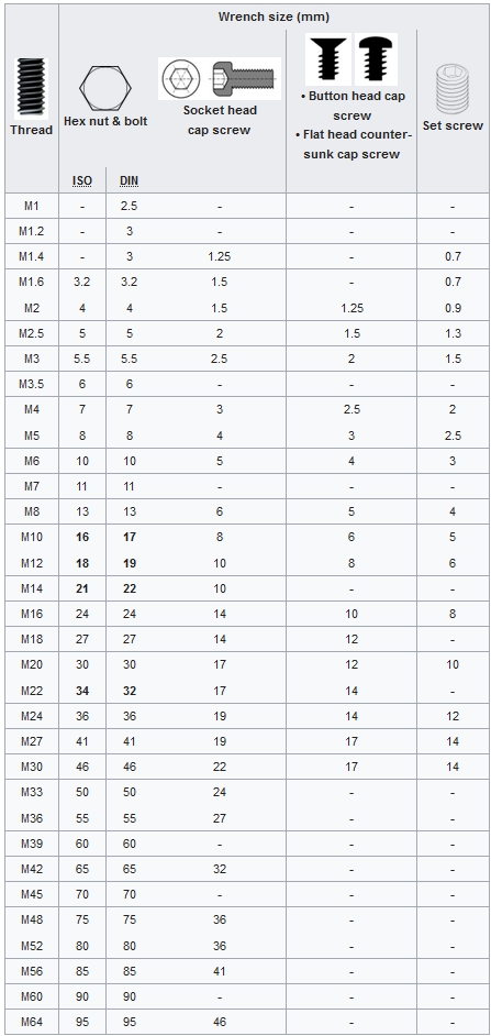 Wrench size mm